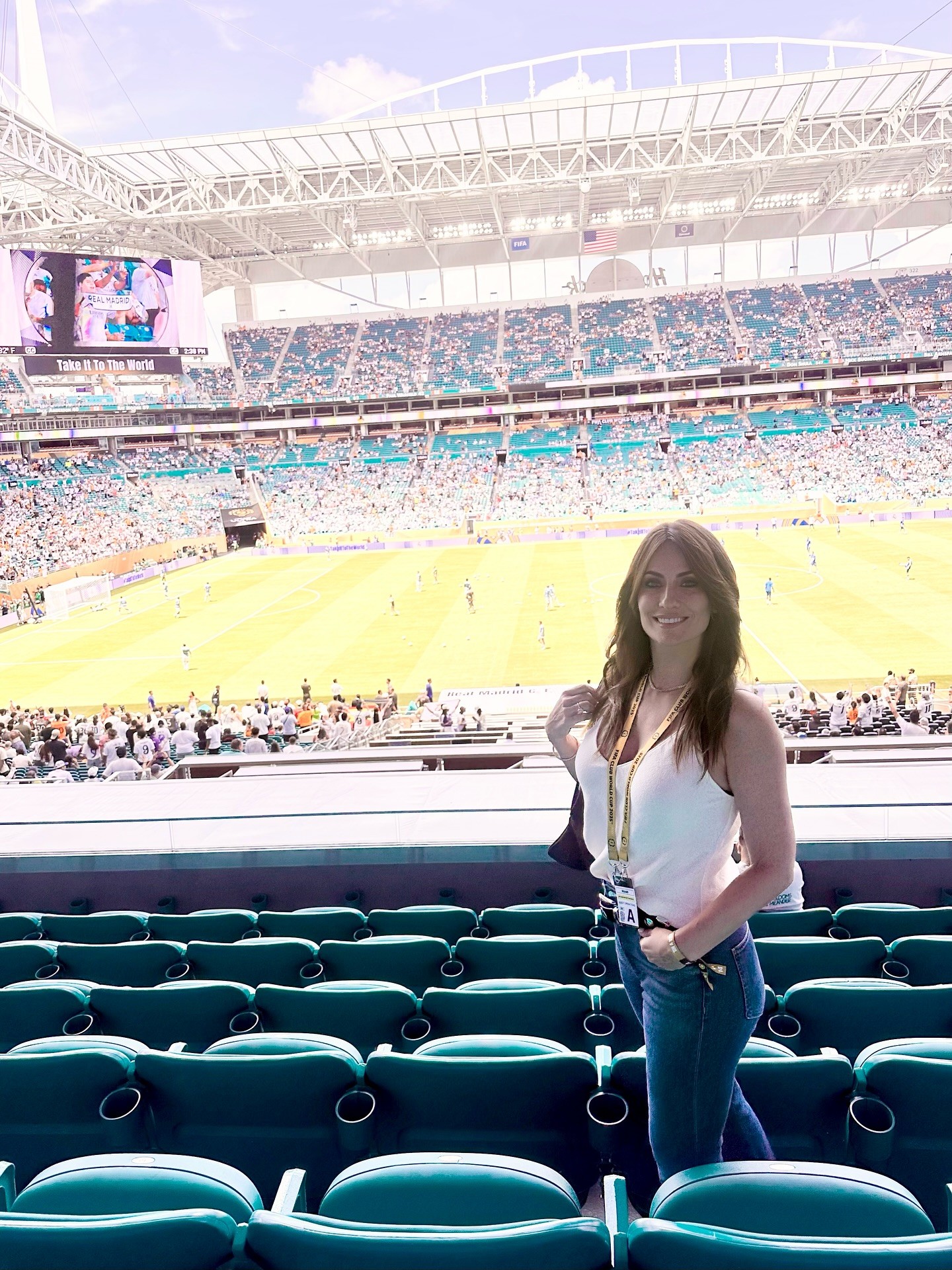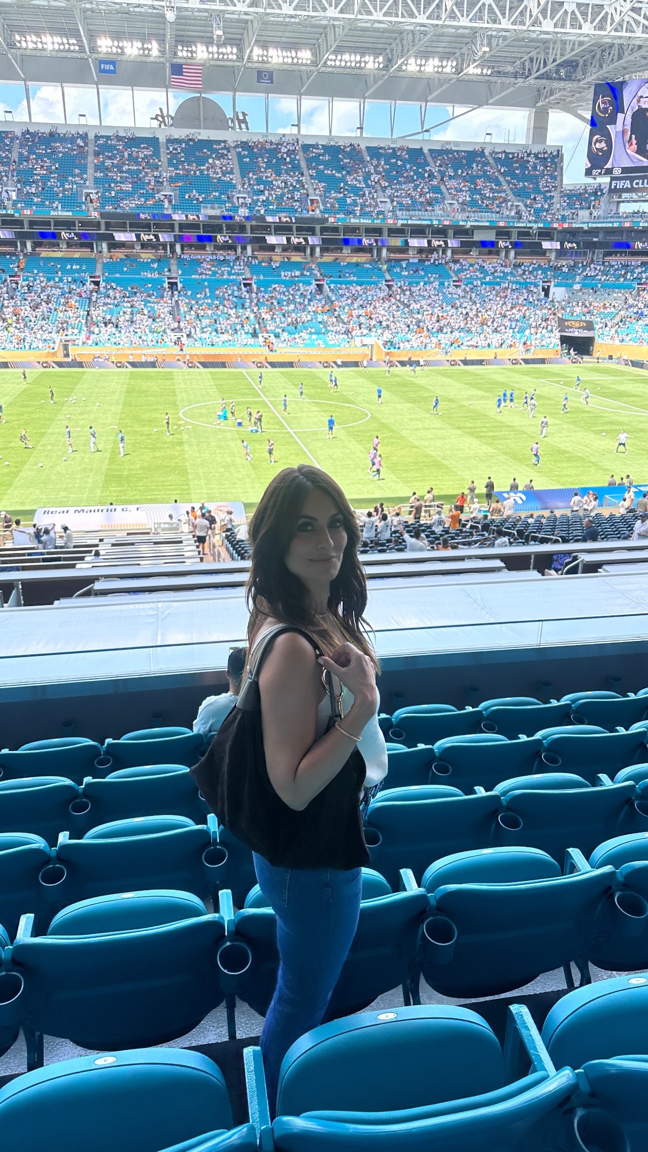 比赛开始前,哈维-阿隆索的妻子Nagore Aranburu在社交媒体晒出她在迈阿密硬石体育场看台上的照片,并写道:“太激动了,世俱杯对我们来说就要开始了!⚽️”
